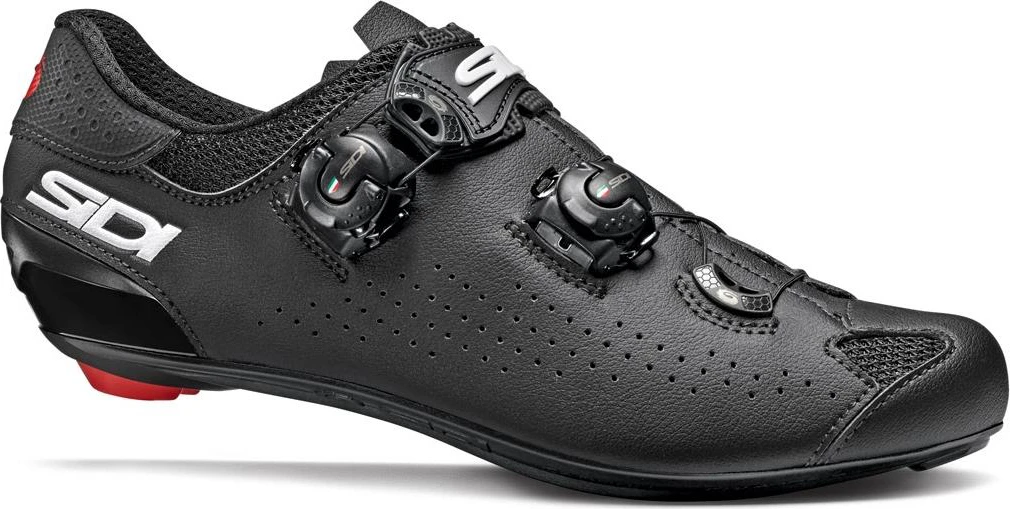 De Sidi Genius 10 is één van de betere schoenen van Sidi. Dit is de opvolger van de Sidi Genius 7, ook al een zeer populaire schoen. De schoen is volledig voorzien van een sluitingsmechanisme met behulp van draad en een draaisluiting. De twee draaisluitingen zorgen ervoor dat de schoen perfect om de voet heen valt, waardoor deze schoen zeer comfortabel aanvoelt. Ook als het gaat om efficiëntie is het fijn om een zo goed mogelijk aansluitende schoen te hebben. De stof aan de bovenkant helpt daar ook aan mee. Het is een lichte en stabiele stof, die ook nog eens enigszins waterafstotend is. Deze stof is duurzaam en ecologisch geproduceerd.Â